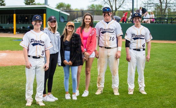 The Crookston Pirates baseball team swept the East Grand Forks Green Wave 13-3 in six innings, and in the second game, they won 6-5 with a walk-off victory in two big Section 8AA games on Senior Night in Crookston. Â