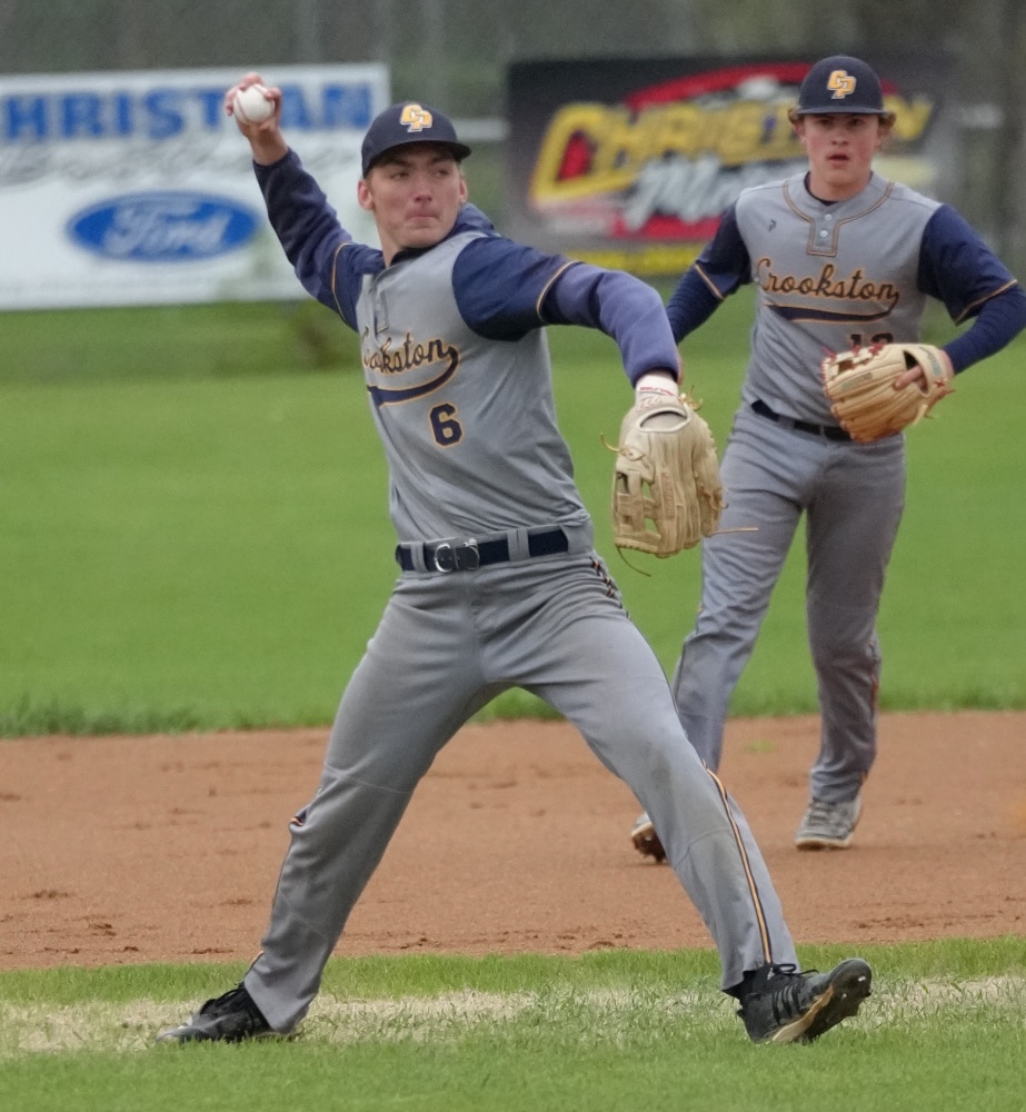 Crookston’s Greyson Ecker walked, Lucas Perala was hit by a pitch and Cody Demarais singled to right field to score a run. Carter Fee reached on an infield single to score another run, but bad Pirate baserunning led to a double play and the Pirates trailed 8-2.
