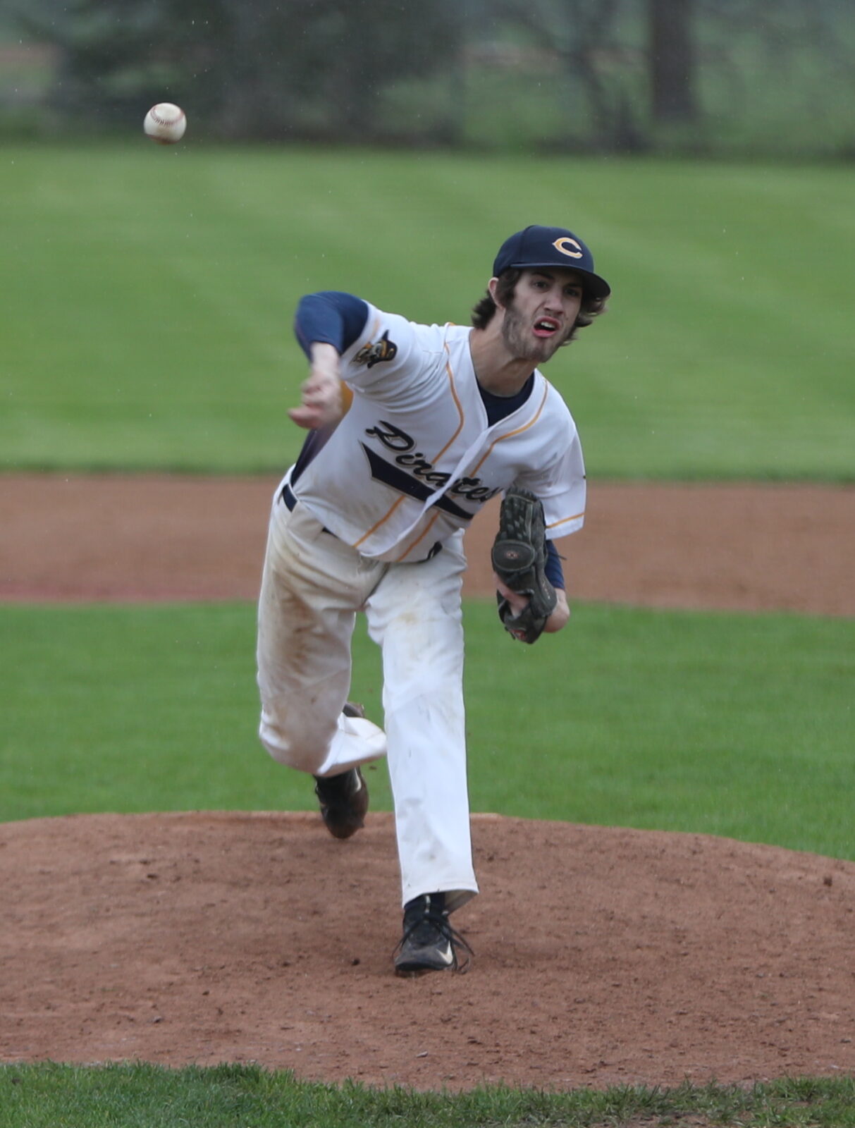 The Crookston Pirate Baseball team took a 6-3 lead in the fourth inning over the Thief River Falls Prowlers when the field became unplayable and the game was suspended until Thursday at Jim Karn Field in Crookston. It was raining the entire game and the field had puddles on the base paths and around home plate.