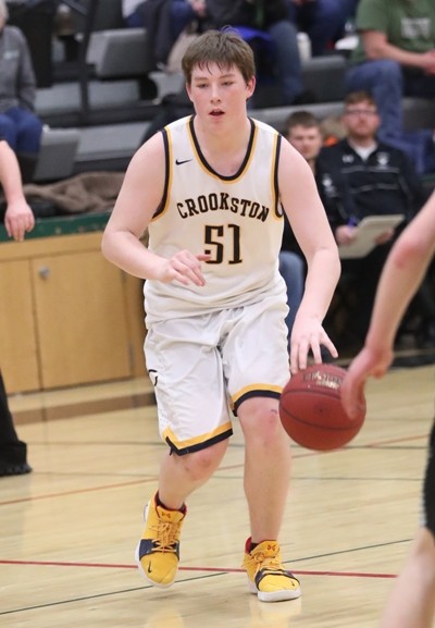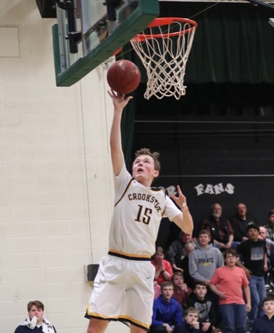The first half was a half of runs with four ties and five lead changes.  Crookston started the game on a 9-1 run, making their first three shots with Nick Garmen getting things started with a three-pointer and after a BGMR free throw, Nick answered with another three-pointer and Jack Garmen followed with a three of his own and Crookston led 9-1 two minutes into the game.  BGMR answered with an 11-0 run with two free throws and back-to-back-to-back three-pointers to take a 12-9 lead.  Crookston trailed 16-15 when Carter Bruggeman sparked an 11-0 run with a basket and Caden Osborn scored all nine of his first-half points over a 74-second span and Crookston had the lead 24-16 halfway through the first half.  BGMR, of course, answered with a run of 10 straight points to take a 26-24 lead.  The teams were tied at 29 with four minutes left in the half and Crookston’s Nick Garmen made a three with one second left in the half to tie the game at 35-35 going into halftime.  “It was nice to get the three before the half and go into the locker room tied,” said Coach Garmen. “We played a pretty good half and Nick and Caden led us (scoring 30 of the teams 35 points.)