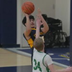 It was an offensive struggle for both teams early as Crookston’s Carter Fee made the first basket less than three minutes into the game. East Grand Forks picked things up, and it started with their defense, which forced several Pirate turnovers, as the Green Wave went on a 16-0 run over five minutes. Rafael Jones made a free throw, Carson McDonald had a three-point play, Brody Knutson and McDonald made back-to-back three-pointers. D’Aijalon Hall made a pair of free throws before McDonald stole the ball and went in for a big one-handed slam dunk, which was followed by two Spencer Larsen free throws for a 16-2 lead with 10:41 left in the half. Crookston stopped the run with a Reggie Winjum basket and a Fee three-pointer to get within a 16-7 deficit, only to have East Grand Forks respond with a 12-2 run for a 28-9 lead. Crookston’s Winjum made a basket before the Green Wave responded with a McDonald three-pointer and baskets from Larsen and Jezrael Jones for a 35-11 lead. Crookston’s Nolan Cassavant converted a three-point play to bring the Pirates within a 38-19 deficit with 2:46 remaining, but East Grand Forks ended the half on an 11-0 run to take a 49-19 lead into halftime.