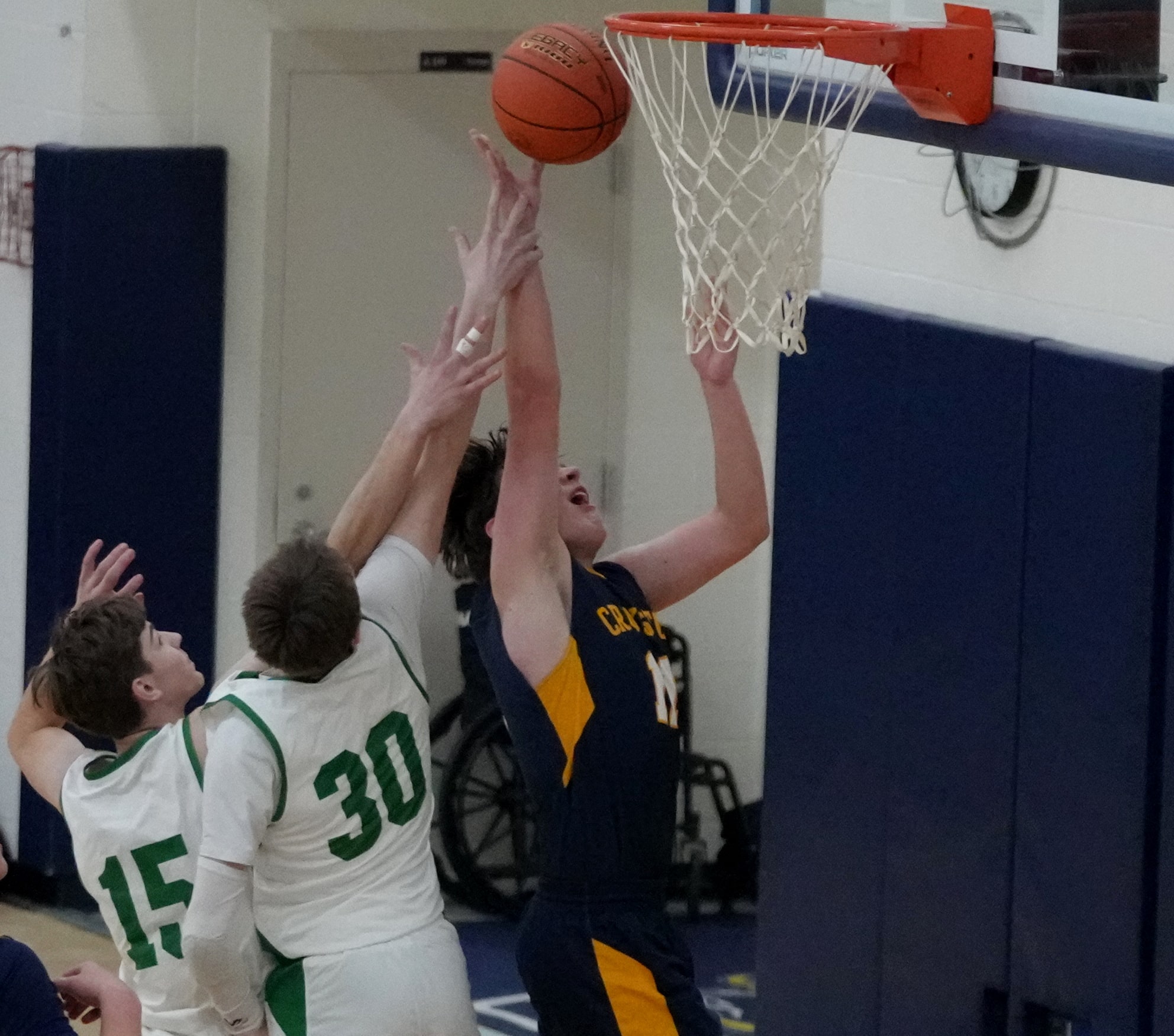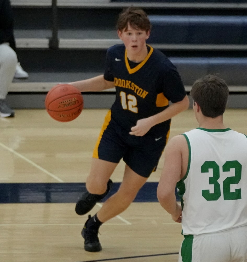 East Grand Forks carried the 11-0 run at the end of the first half into the second half as the Green Wave started on a 10-0 run. McDonald scored four points, and Alexander Link, Rafael Jones, and Knutson added a basket each for a 59-19 lead. Crookston stopped the run with two points apiece from Cassavant and Beau Smith. After an EGF basket, Smith added a free throw, and Winjum rattled home a three-pointer to get within a 61-27 deficit six minutes into the half. The teams exchanged baskets, and East Grand Forks led 71-33 halfway through the half, and running time started as the Green Wave went to the bench for the rest of the game. The final nine minutes flew by with running time, and Crookston freshman Nolan Johnson scored eight of his 10 points in the final five minutes of the game, but East Grand Forks held on for a 79-44 victory.