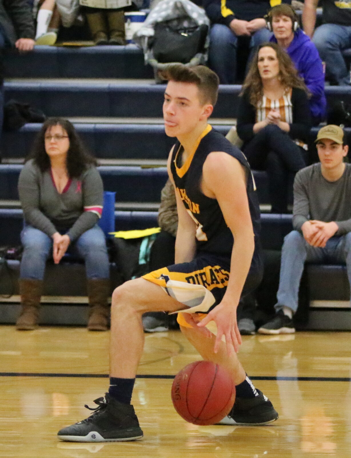 Crookston started the game well with a Caden Osborn lay-up giving the Pirates a 2-0 lead. Walker Winjum made the first of his five three-pointers pushing the host’s lead to 5-0. After Barnesville’s Grant Inniger made a jump shot from the free-throw line, Brady Butt caught a baseline inbound pass and made a jump shot from the baseline followed by a Nick Garmen three-pointer on a pass from Caden Osborn giving Crooskton a 10-2 lead. The Trojans responded with a 5-0 run pulling within 10-7. Nick Garmen answered the visitor’s run with a three-pointer, but Barnesville countered with another 5-0 run cutting their deficit down to 13-12. Barnesville took its first lead of the night following a Caden Osborn lay-up as the Trojans scored two straight baskets to take a 16-15 lead. After Walker Winjum made a free-throw tying the game at 16-16, Crookston scored six consecutive points finished by a Caden Osbron spin on the left block resulting in a finish at the rim pushing the Pirates ahead 22-16. After a Barnesville three-pointer, Crookston went on a 12-0 run with three-pointers from Nick Garmen and Walker Winjum propelling Crookston to a 34-19 lead. Later in the half, Winjum knocked down another three-pointer giving Crookston a 39-25 lead, but Barnesville’s Adam Tonsfeldt closed the half with two free-throws pulling the visitors within 40-27 at halftime. “We shot really well early on in the first half,” said Crookston head coach Greg Garmen. “They didn’t shoot the ball well in the first half and (Hunter) Zenzen went out with a couple fouls, but when Caden went out in the second half it was almost a reversal for us.”