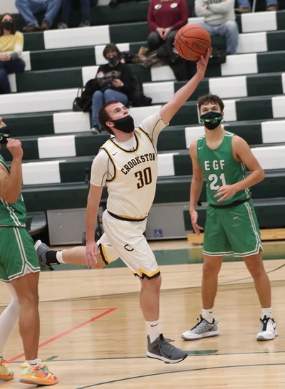 Crookston’s Carter Bruggeman scored the first points of the game, but EGF scored the next four points of the game. With 13:16 left in the half, Jack Garmen scored to tie the game at 4 and EGF’s Sam Votova picked up his second foul of the game. Crookston already had Bruggeman on the bench with two fouls, but the Green Wave elected to keep Votova in the game and it proved to be the right move as he scored less than a minute later to spark an 8-0 run with back-to-back three-pointers from Carter Vasek and Tyson Mahar for a 12-4 lead. “Votova is a load. He is a very good player and we struggled to stop him tonight,” said Pirate Coach Greg Garmen. Crookston responded with a Tristan Luckow basket and a Jacob Miller three-pointer to get within a 12-9 deficit with less than eight minutes left in the half. Sam Votova stopped the Crookston run with a three-pointer and followed with two free throws to spark a 10-0 run while also drawing the third foul against the Pirates’ Bruggeman. “We’re not very deep right now and if we get one of our starting five in trouble and we are a little bit different,” said Pirate Coach Garmen. “I put Carter back in and had somebody at the table when he picked up his third.” The Green Wave cruised the rest of the half on their way to a 39-19 lead. “We needed to keep people out of foul trouble and didn’t do that,” said Coach Garmen. “We couldn’t get anything to go in tonight, even with wide-open shots.”