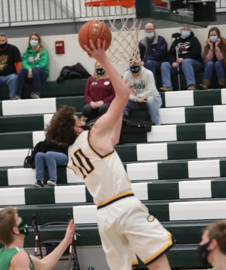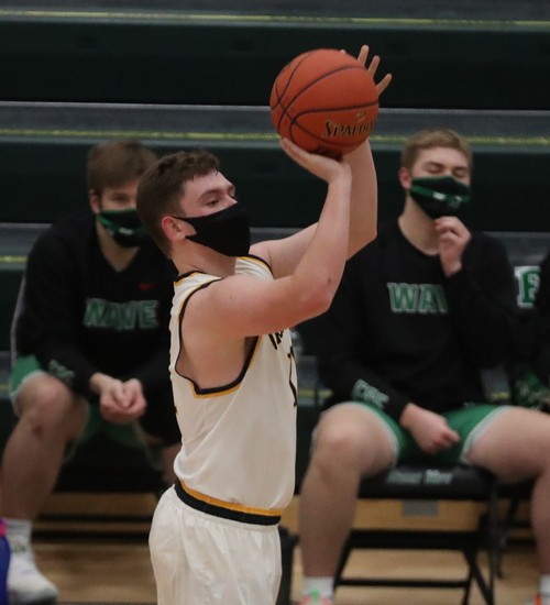 East Grand Forks Green Wave senior guard, Sam Votova, scored 27 points to lead his team to a 70-47 victory over the Crookston Pirate Boy’s Basketball team in a Section 8A matchup in East Grand Forks.