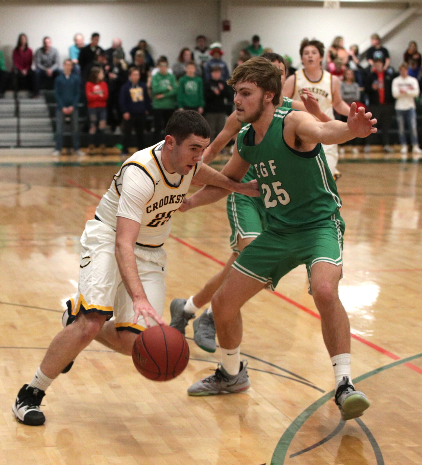 The Crookston Pirate Boy’s Basketball team was unable to overcome a 19-0 run by East Grand Forks in the first half as the Green Wave beat the Pirates for the third time this season 86-74 in the first round of the Section 8AA tournament played in the East Grand Forks High School Gymnasium.