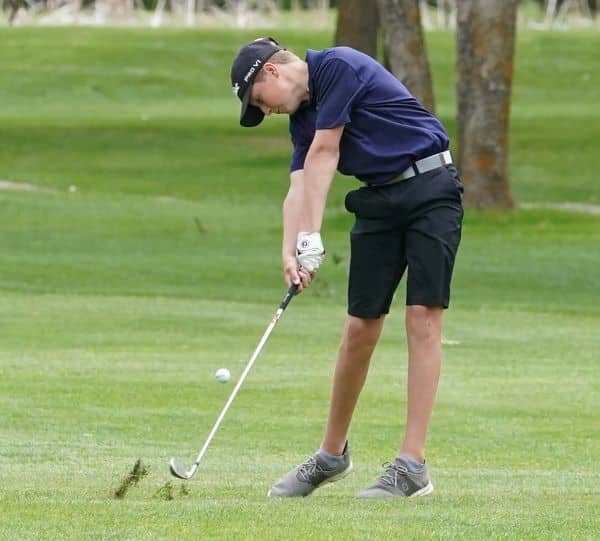 Ashton Shockman shot a 99. “Ashton had a couple of holes that really hurt him today,” said Coach Kofoed. “He would have liked a better score, but the wind took a toll on him today and caused a couple big holes.”