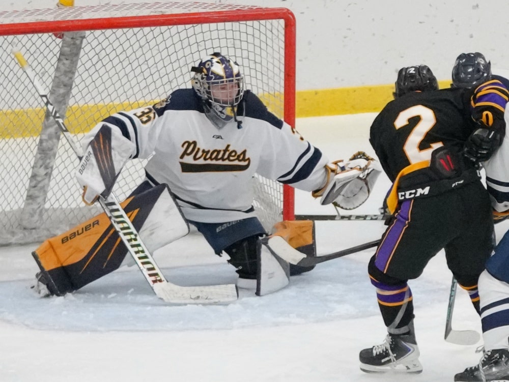 The Crookston Pirate Boys Hockey team scored three unanswered goals, including one 51 seconds into overtime to beat the Red Lake Falls Eagles 5-4 in a Section 8A matchup at the Crookston Sports Center.