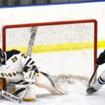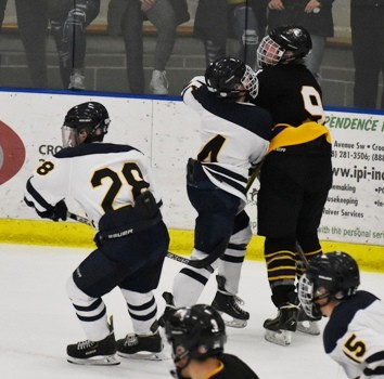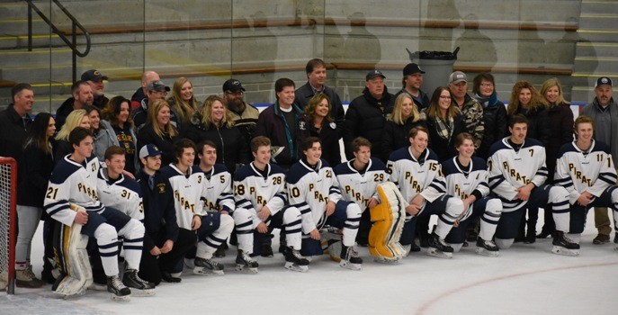 Neither team would score in the third period although the Pirates Keaton Goering and Killian Kuchan both had opportunities to pick up their first career points but couldn’t capitalize. Senior Tanner Janorschke played the third period in goal for the Pirates, his first varsity minutes stopping all four shots he faced. “We got everybody involved here in the third period,” said Hardy. “A lot of guys who don’t normally see a lot of varsity time got to get in their play some good minutes. Tanner was great, he got tested a couple of times and did a nice job. We mixed up our lines and got guys like Keaton Goering, Killian Kuchan and Mason LaPlante regular shifts. The boys like that with boys they’ve grown up playing with getting a chance to get out there when they haven’t gotten too many opportunities to jump up on varsity.”
