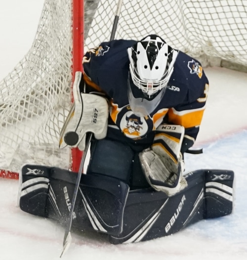 In the final minute, Crookston was looking for offense as Carter Trudeau sent a pass for Grant Funk, who fired a shot on goal. Roff made the save, but Garrett Fischer was there for the rebound and put the puck in the back of the net to make it 3-1 Thief River Falls on top. Nine seconds later, Fischer would score again; this time, Teagen Lubinski sent a pass for Kadin Edwards, whose shot was saved, but Fischer was there again to score and make it 3-2 with 35 seconds left in regulation. Thief River Falls would win the faceoff and send the puck into their zone, but Hamre would get the puck for the Pirates and worked his way into the offensive zone. The Pirates couldn’t beat Roff in the final seconds as the Prowlers cleared the puck down to the other end but iced it with 0.5 seconds left. On the faceoff, Kadin Edwards tried to get a shot off the draw, but his attempt was blocked into the corner as time expired. Thief River Falls would get the win 3-2.