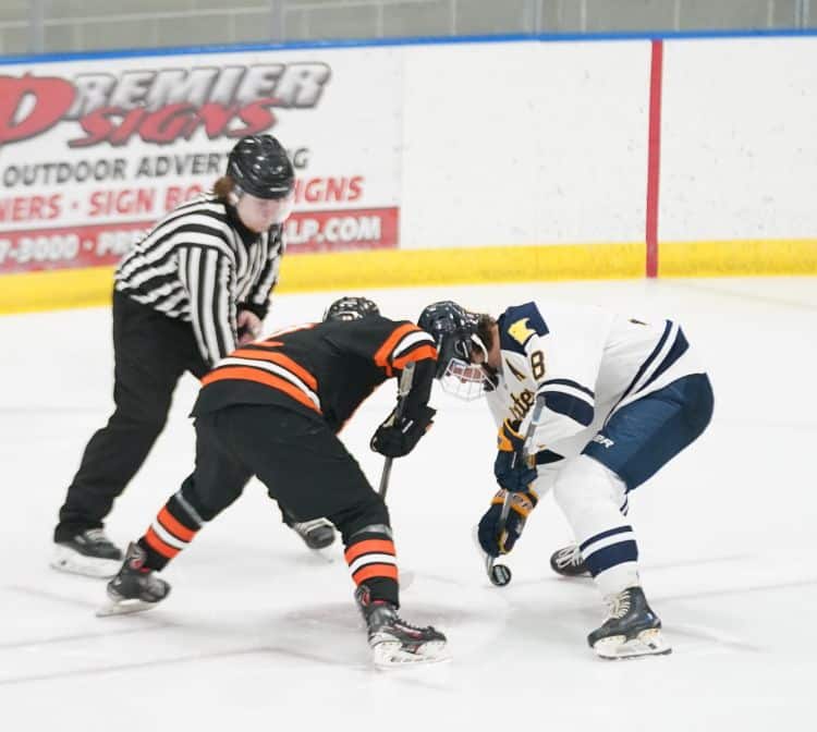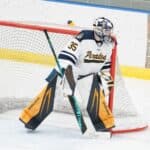 In the second period, the Tigers played much better. Zachary Ennis, the Tiger goalie, allowed 5 goals on 10 shots in the first period, but made 11 saves on 12 shots in the second period, a much improved metric. The one shot that beat him came from Garrett Fischer, who fired one top shelf for his 101st career point, giving the Pirates a 6-0 lead. It looked as if the Pirates would take that lead all the way into the locker room for the second intermission, but a late slashing penalty gave the Tigers a power play. This allowed Mason Clark to put away a rebound with 17 seconds to go in the period, allowing the Tigers to cut the lead to 6-1 at the end of the period.