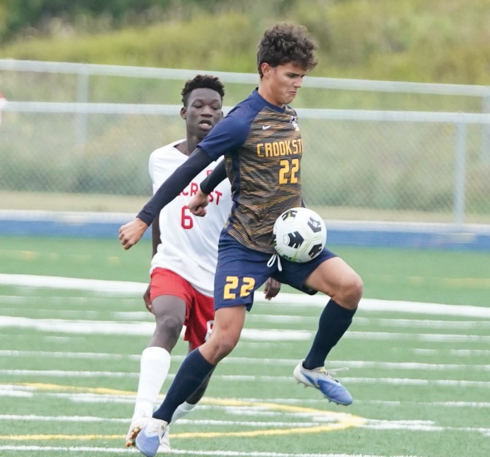 There weren’t many solid scoring chances for the next 20 minutes until Crookston turned the ball over in front of the net and Hillcrest put a shot on goal, but Pirate goalkeeper Reggie Winjum made a diving save to keep the game scoreless.