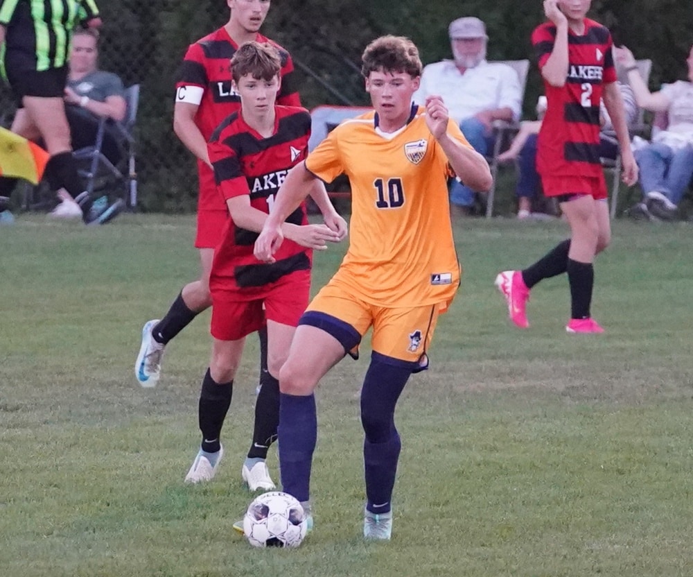 Contreras had another chance as he beat a defender, but he was knocked down from behind and had a free kick from about 30 yards out. The Laker goalie made the save to keep the Pirate lead at 3-0. “That was a super play,” said Coach Boike. “Jack had a great pass and Brandon finished off for a big three goal lead.”