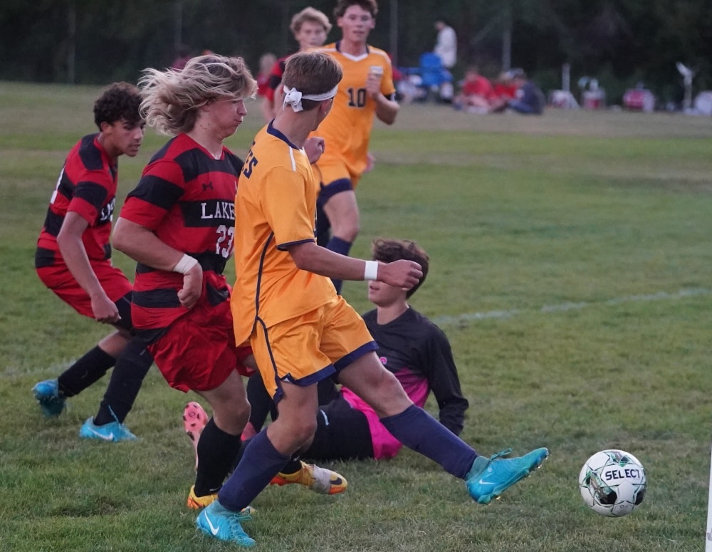 The Crookston Pirate Boys Soccer team wore their gold jersey for the first time and they put together a great all-around game as they beat the Detroit Lakes Lakers 5-2 in a game played at Rotary Soccer Field in Detroit Lakes.