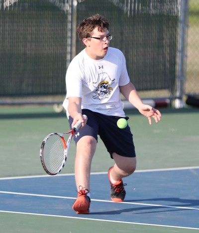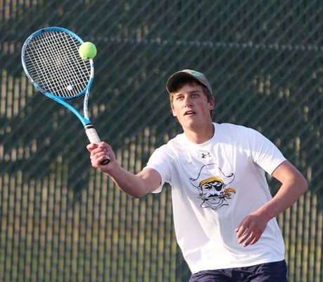 Nick Garmen made quick work of his first singles match and won 6-1, 6-0 in about 20 minutes. “Nick played a kid that wasn’t used to playing first singles and Nick took advantage of it,” said Coach Brekken. “Nick did a nice job of using angles and came to the net and had a nice match.” The first doubles team of Blake Fee and Logan Wardner won their match with ease, by a 6-2, 6-3 victory to give the Pirates a 2-0 lead. “That was a good match with the chemistry of those two and they made quick work of the match,” said Coach Brekken.