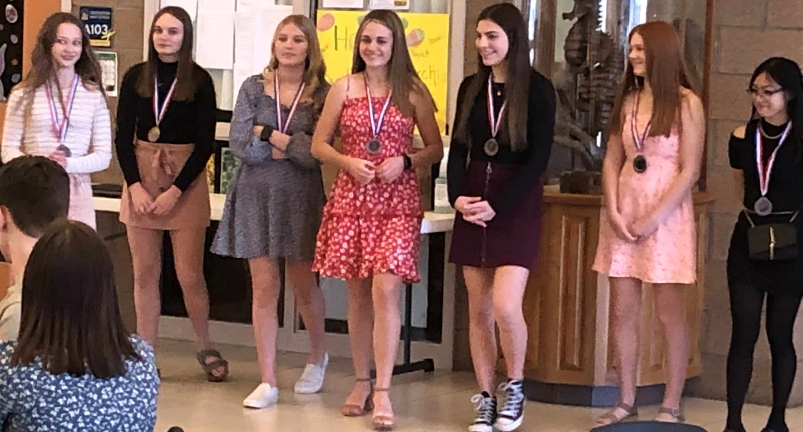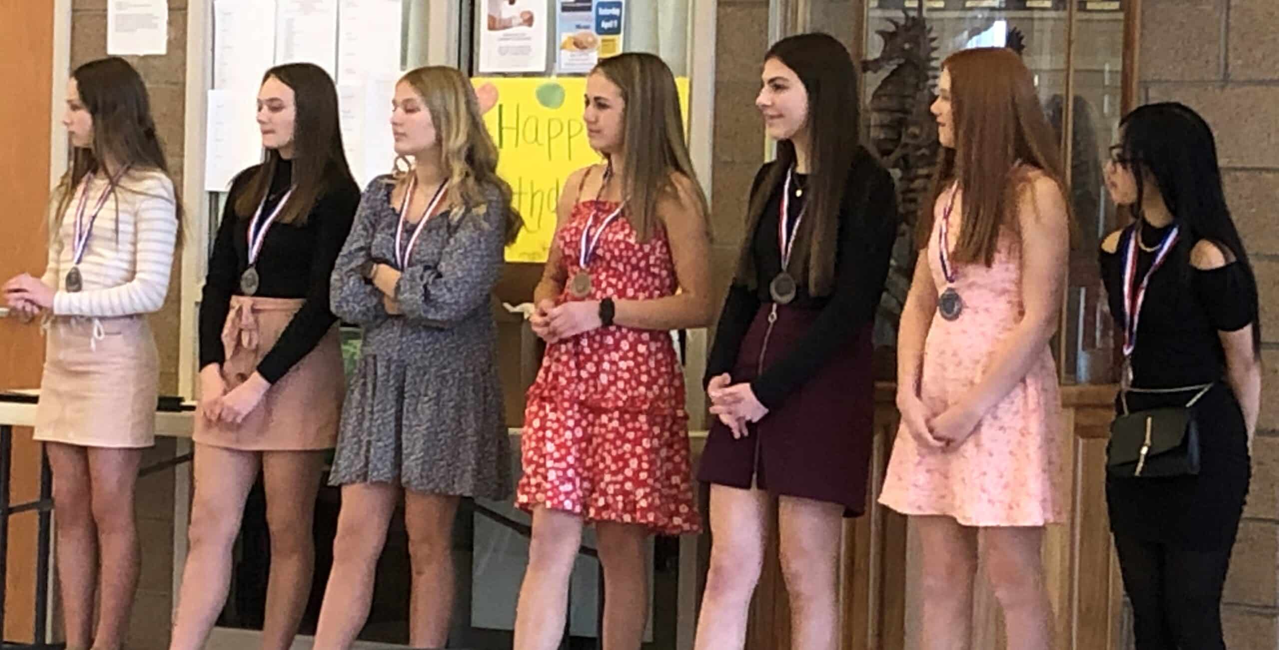 Head Coach Grace Espinosa also awarded eight members of the team with medals for placing at the State’s Meet for the first time in 21 years. They were awarded to Amelia Cordova, Kendra Brekken, Morgyn Larson, Avery Trudeau, Calleigh Fanfulik, Mackenzie Funk, Avery Mathews, and Ella Bautista.