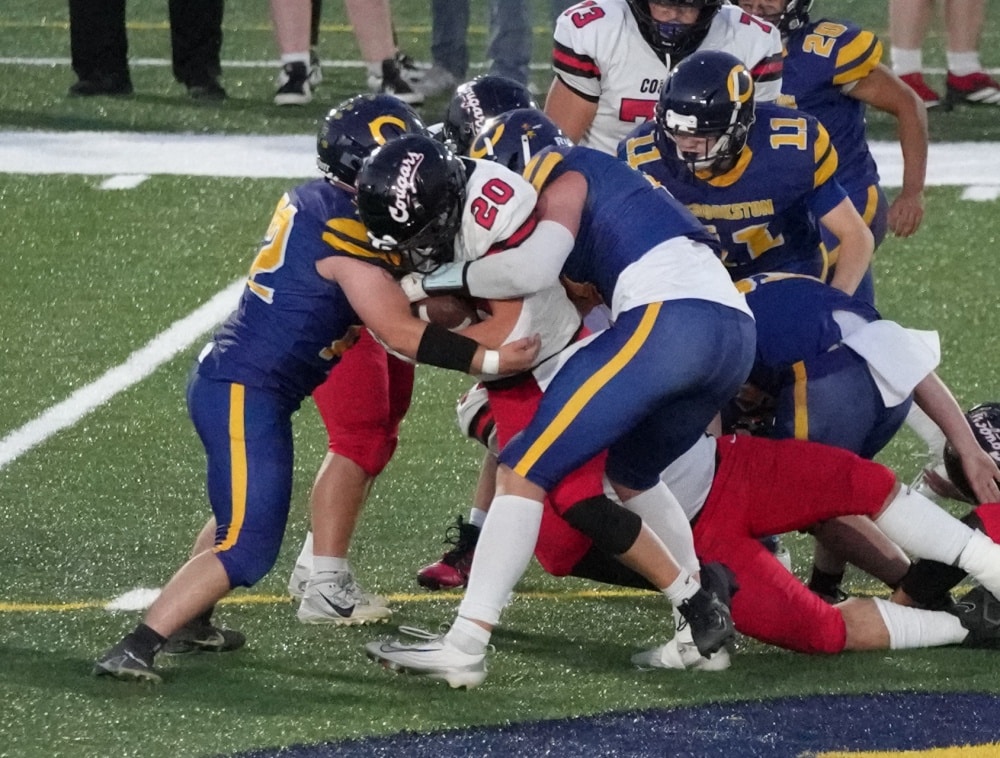 Crookston tried to answer on the next drive as They had two runs for five yards before the delay of game peanlty. Crookston’s Zachariah Ali ran for 14 yards and a late hit gave the Pirates 15 more yards and a first down. The Pirates lost yardage on the next three plays and punted for 35 yards. The ABW returner fumbled the ball and Crookston’s Hamre recovered the ball on the Cougar 17 yard line.
