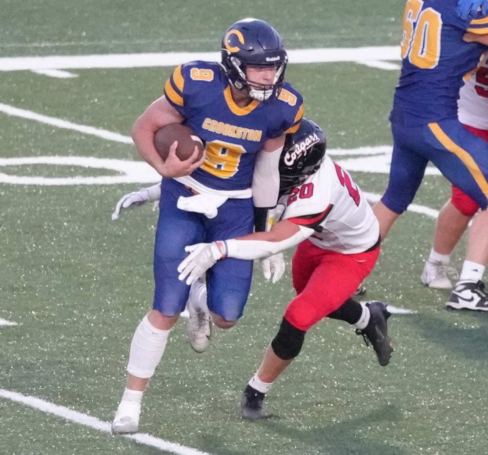 Crookston’s first play was an 18 yard run by Hamre. The next play was no gain, Jaron Knutson ran for four yards, Hamre ran for 23 yards and another first down. The offense sputterd and loss yardage on two plays and had an incomplete pass and then turned the ball over on downs.