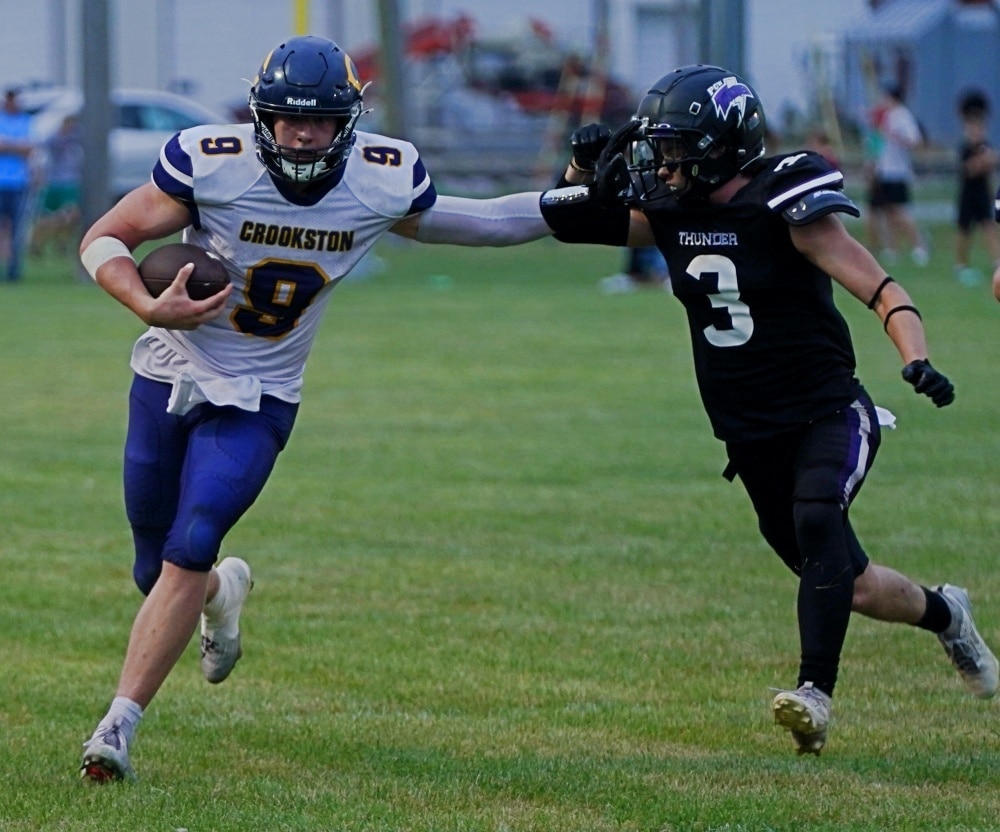 The Crookston Pirate Football team kept the game scoreless after the first quarter, but the Polk County West Thunder surged forward from there on, as they pushed ahead to a 40-0 victory in Climax on Friday night.