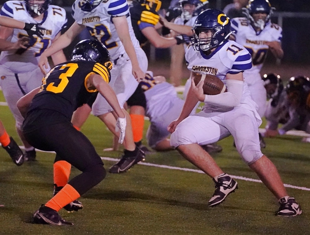 Crookston’s first drive of the game was a great answer to Warroad’s opening drive. It started with no gain on the first two plays before a Rylan Lubarski 14-yard run for a first down. Crookston had a six-yard gain before Warroad had a five-yard offsides penalty for another first down. Tate Hamre and Teagen Lubinski had two six-yard runs for a first down, which was followed by a seven-yard run by Jose Arriaga and a Lubarski six yard run. Crookston continued to move the ball down the field to end the first quarter.