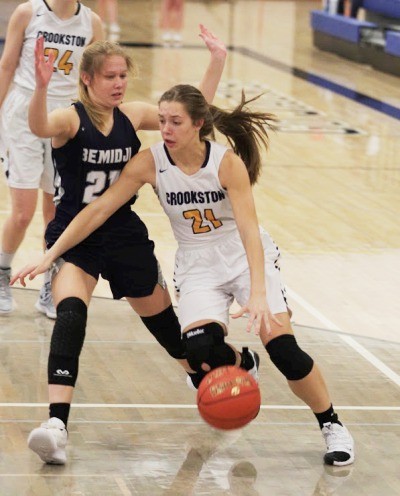Neither team had a great start and six minutes into the game Crookston led 6-5. Bemidji answered with a 16-4 run to take a 21-10 lead with six minutes left in the first half. The Pirates were able to close the gap with a strong finish and Bemidji led 29-24 at halftime. “It was a good first half. I thought we did a good job defensively. Offensively we moved the ball around and played well, but we had four girls in foul trouble with two fouls apiece and that kind of cut into our momentum,” said Pirate Coach Darin Zimmerman. “We needed to be a little bit better moving our feet we would have been in better shape. We had the looks we wanted in the first half and we didn’t shoot as well from the outside, but we had good looks inside.”