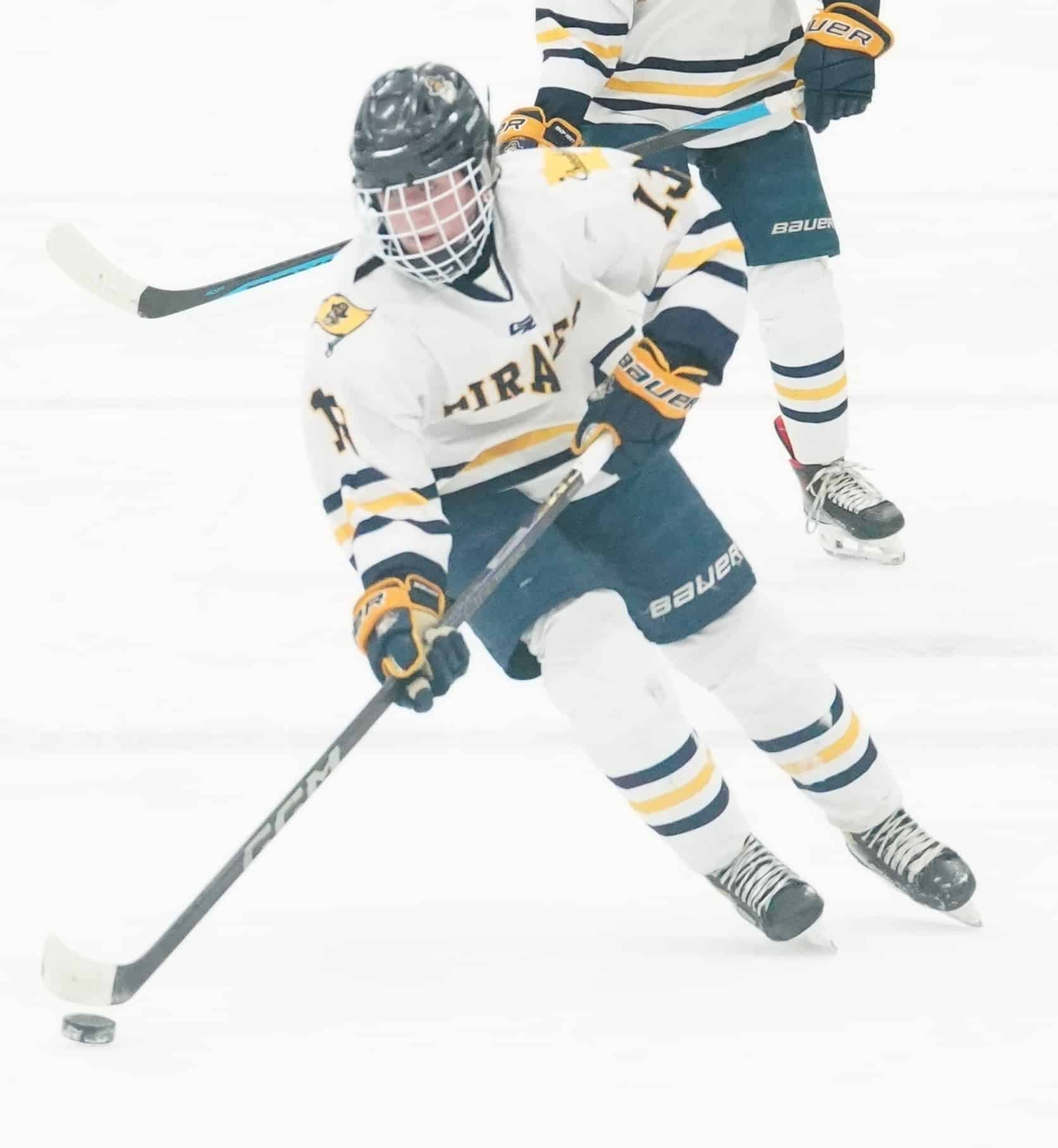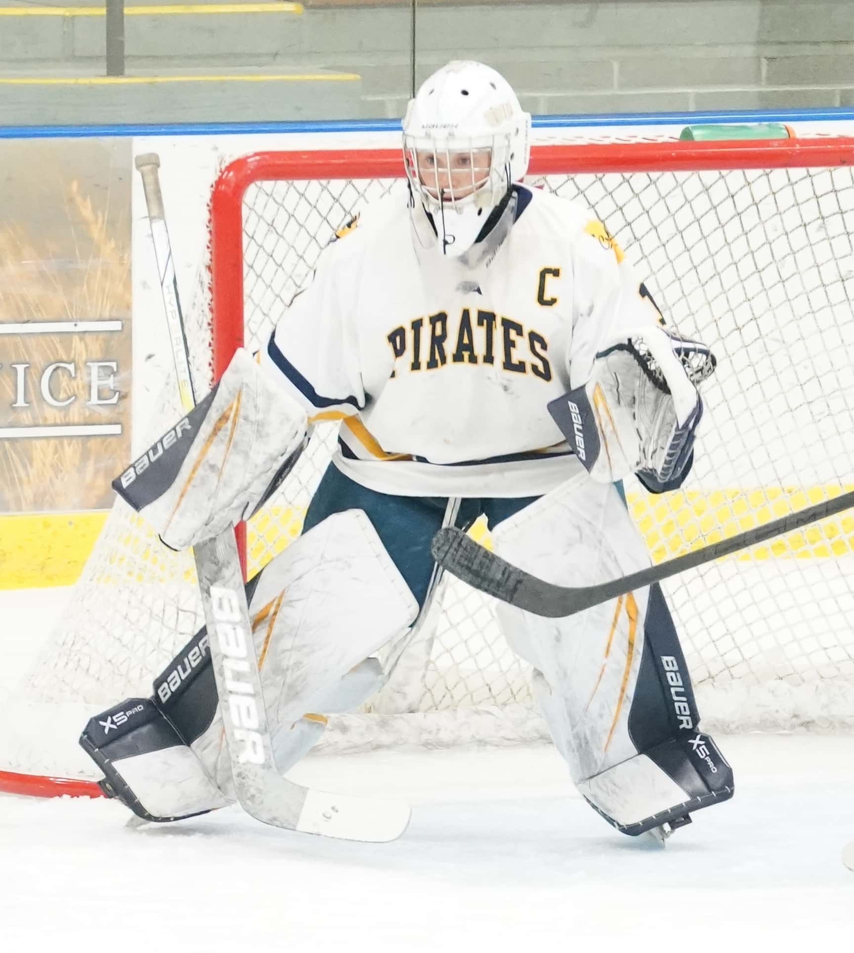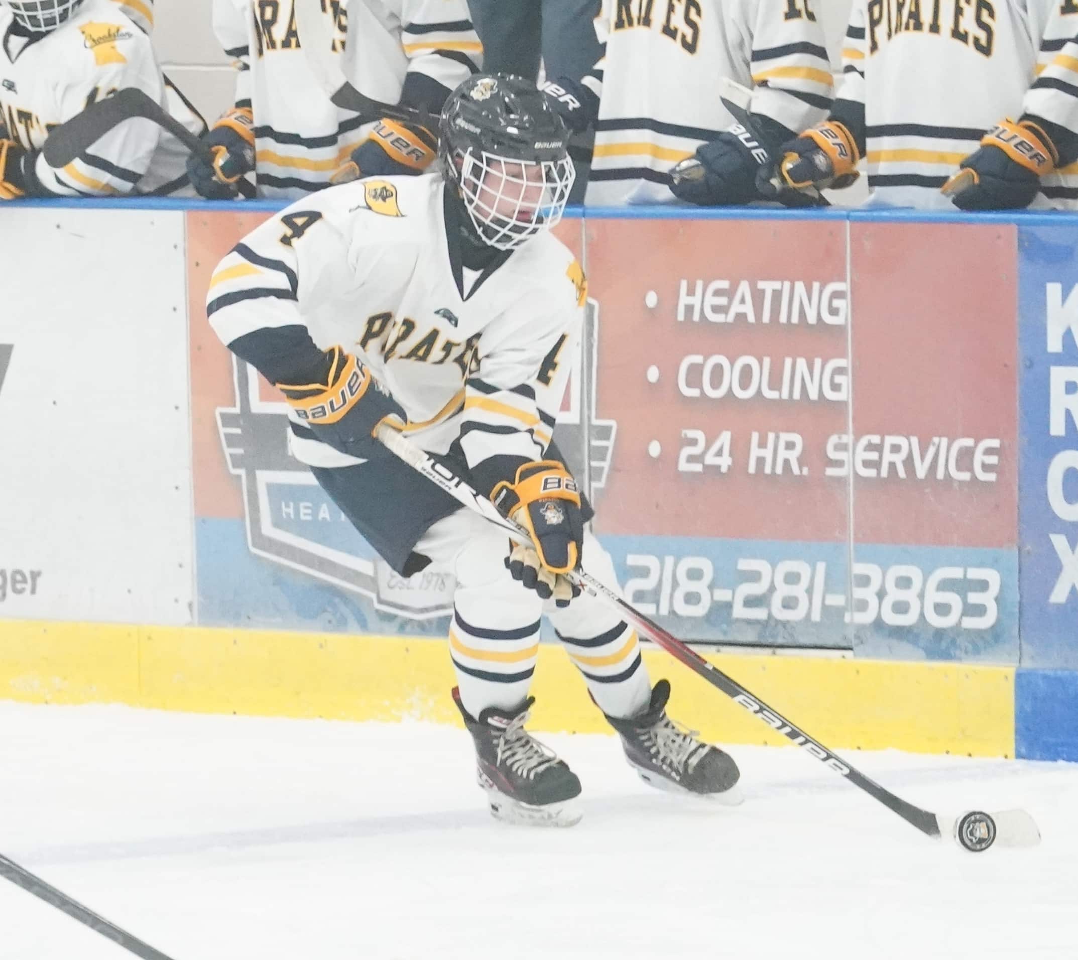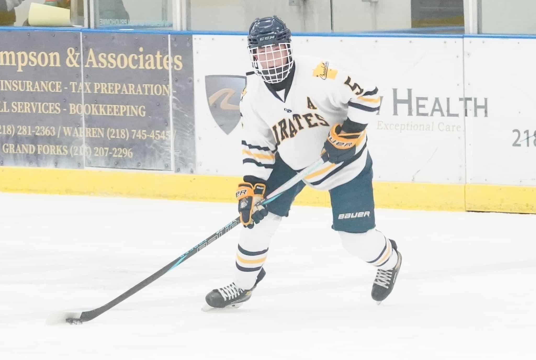 Both teams came out aggressively in the final period and chances were had by both teams and nothing came of it as both goalies were tough. East Grand Forks went on the power play six minutes into the period and had their top line on the ice, led by junior Blake Schultz the sixth leading scorer in the state of Minnesota. The Pirates did a nice job of keeping Schultz under wraps until now!! Schultz picked off a Pirate pass near center ice and the speedster was quick into the Crookston zone and was in alone on Frieje and snapped off a shot that beat the Pirate goalie to get within a 2-1 score with nine minutes left in the game. “She beat me bar down,” said Frieje about the goal, “she is a great player and a friend, who we handled for most the game.” Things were interesting the rest of the way, with East Grand Forks getting a number of those odd man rushes and sometimes all by themselves on Freije. “I’m not sure what really happened in that third period,” said Freije, “it was weird, but we were able to get the win, a good team win over another Section 8A team.”