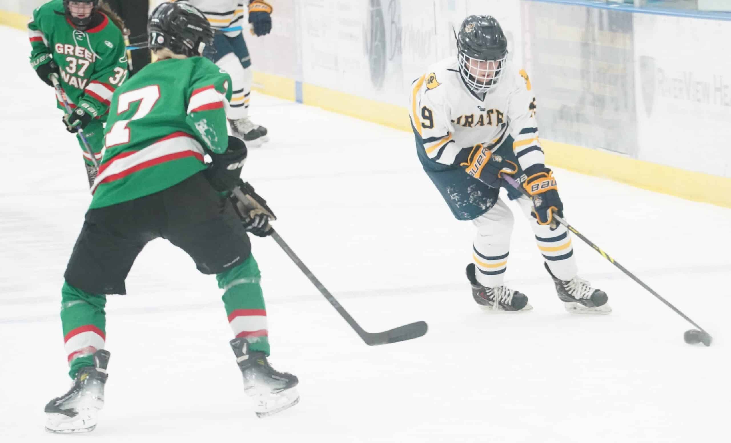 The Crookston Pirate Girls Hockey team built up a 2-0 lead after two periods and after a Blake Schultz power play goal with nine minutes to go, held on to defeat the Green Wave 2-1 in a Section 8A game at the Crookston Sports Center.