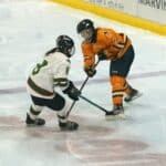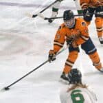 The third period started with a power play for 1:12, but just 17 seconds into it, Blake Schultz took a turnover in neutral ice all the way, scoringn shorthanded to increase the lead to 2-0. The Pirates throughout the game had 9 power plays, varying in time, and they were unsuccessful in their first 8. The offense slowly started to get more chances, as both teams stayed even in shots on goal, and then finally at 12:28, on their 9th and final power play chance, Emma LaPlante put in a rebound to cut the lead down to 2-1. The Piraates had a couple more opportunities a minute later, including a tipped shot by Adley Vigness, but the Green Wave continued to hold the line. Finally, with 3 seconds left, Kinsley Wangan had a breakaway, but the shot was tipped at the last second by Ady Hjelmen, ending the game with the Green Wave winning 2-1.