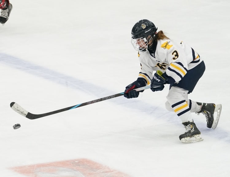 With a 2-0 lead and your opponent has thrown 23 shots at your goal, one would say the 2-0 lead might be tenuous! The way to undo that thought is to score some more goals! The Pirate did just that with two goals about a minute and a half apart. It started with Field from inside her own blueline finding Fee near the River Lakes blue line. Fee made the catch, was turned around by a Stars defenseman and Fee made a nice move to free herself and onto her forehand and unload a bullet that went top left shelf to give the Pirates a 3-0 lead with just over nine minutes to go in the game. “It was great to see Addie get some space, and she really snapped off a great shot top shelf,” said Coach Olson. Then just a bit later Field started from her own end and flew into the River Lakes end and buried a shot for her second goal of the game and made it 4-0 with seven minutes to go. There were four penalties on River Lakes in the third period, while the Pirates had one minor and one major penalty. Crookston ended up 0-4 on the power play while River Lakes was 0-2 after all the penalties and even on the five-minute major they had, they ended up taking two penalties during this time and ended up with about 30 seconds of a possible five minutes with the man advantage!! “We have to do some work on the power play, that’s for sure,” said Coach Olson, “All the penalties seem to come when either our number one power play uniting a shift, or we’d draw a penalty, was just finish which would limit our power play. They took eight penalties in the game, and we were 0-4!!” Crookston finished out the game, giving up 15 shots and 38 total for the game, in which Freije stopped them all for her first shutout of the season and 13th in her career, which ties her with Amy (Burke) Erdmann!! She also got her 1,000th career save in the first period and now has 1,029 saves!! “It’s unreal,” said Freije, “I have to thank my teammates, coaches and a lot of hard work, but we have a bunch of games left this season and hopefully we’ll pick up some more wins.” Freije signed a letter of intent to play college hockey at Wisconsin-Eau Claire.