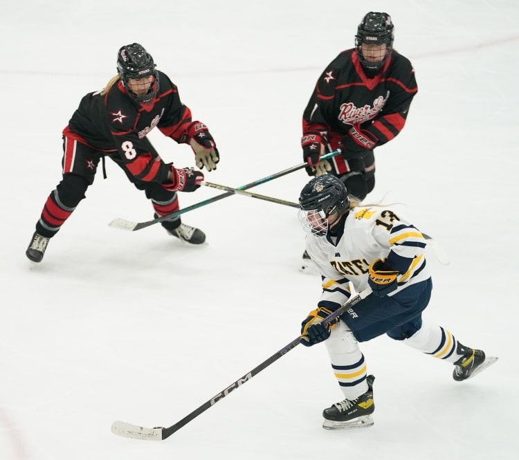 Nobody scored in the 17 minutes second period, but both had some opportunities to score. About midway through the period Crookston crashed the River Lakes zone and Fee and Field had some outstanding chances in front as both tried tips in front that Roeske make great saves on. Crookston’s Parker Strand had some good chances as well. “I thought Parker had a good game,” said Olson of the Mayville product, “she had a number of good chances to score. River Lakes also showed some spark as they had double figures in shots in each period. A big senior captain, Sophia Hess had multiple chances and was stuffed by Freije throughout. “I thought our defense played well during the game,” said Freije, “I like to deflect shots to the corners to keep away from in front of my net, but our defense does a good job of clearing pucks and then keeping shots to the outside and gives me a clear sight of the shot.” Crookston cranked out 18 shots on goal but still led 2-0 after the second.