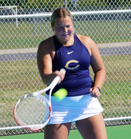 Crookston once again got off to a great start with Isabelle Smith picking up a win in the #4 singles slot 6-1, 6-0. The doubles play also continued to excel with the #2 doubles team of Addie Fee and Kaylie Clauson making quick work of their opponents 6-1, 6-3 to give Crookston a 2-0 lead in the match. “Coming off the invitational where Kaylie and Addie won the Gold Medal at #2 doubles, it was nice to see them go through their match quick and continue to play well,” said Coach Brekken. “