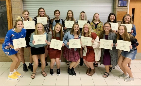 The team only handed out letters to the 15 letter winners. The team receiving letters were Audrey Harbott, Eden Haller, Catherine Tiedemann, Emma Borowicz, Linnea French, Hayden Winjum, Hannah Lindemoen, Emma Osborn, Halle Bruggeman, Ella Kiel, Macy Fee, Abby Borowicz, Halle Winjum, Emma Gunderson, and Brekken Tull.