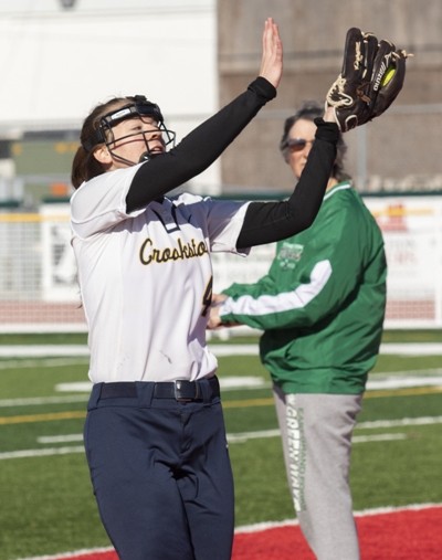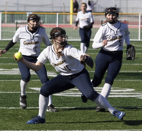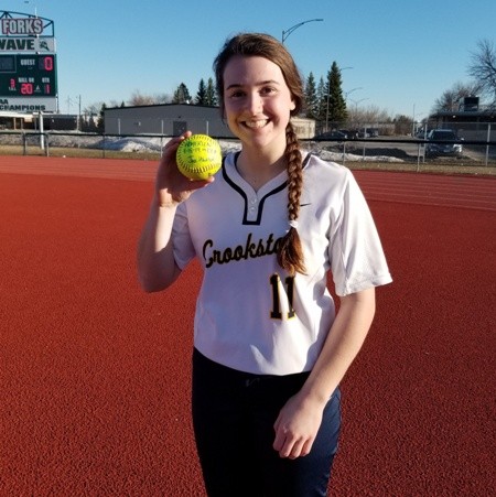 Crookston went down in order in the top of the third before McKenna Aitchison led off the bottom half of the inning with a triple, before coming home to score after an errant throw by Crookston’s catcher once Aitchison was caught in a rundown back to third base from home plate. Hanson bounced back from her team’s defensive miscue with her second strikeout of the day followed by a ground out keeping the Pirates within 5-0 after three innings. Crookston began to cut into their deficit in the top of the fourth inning. Emma Boll started the rally with a walk before Jasmin Hanson hit a single for the Pirates first hit of the game putting runners on first and second base with no outs. After a strikeout, Brylee Lessard singled to right field scoring Boll and cutting the Pirates deficit down to 5-1 heading into the bottom of the fourth inning. “It was obviously pretty short notice for Brylee (Lessard),” said Crookston head coach Robbe Nessler after Lessard entered the lineup following an injury to one of her teammates. “She stepped in, and she had just learned that she was coming in not too long after that because Allie (Love) ended up having a little bit of an injury issue. Once we got some girls on base, Brylee was able to come through and bring somebody in for us.”