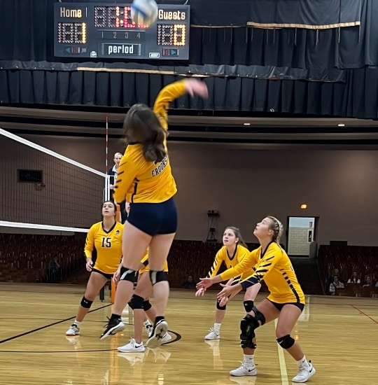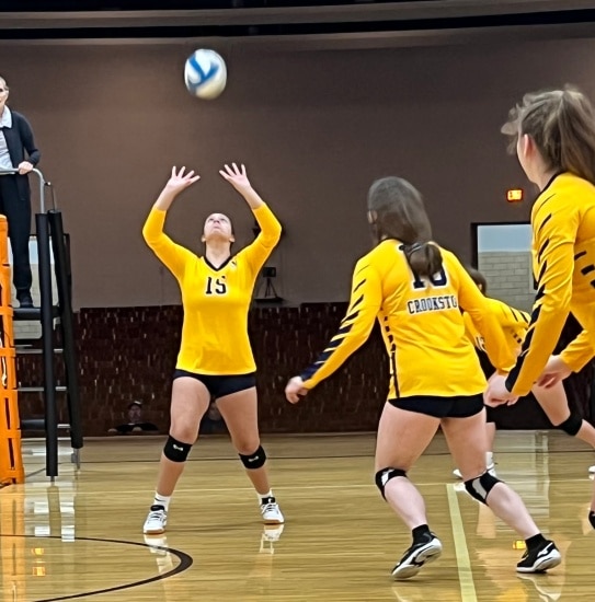 Crookston would be on the upside in the second set of the match and come out thumping Mahnomen-Waubun 25-17 to force a third set. “It was a nice turnaround for us in the second set and we didn’t commit as many mistakes,” said coach Engelstad. “I don’t think we had any missed serves in this set and that makes a big difference.”