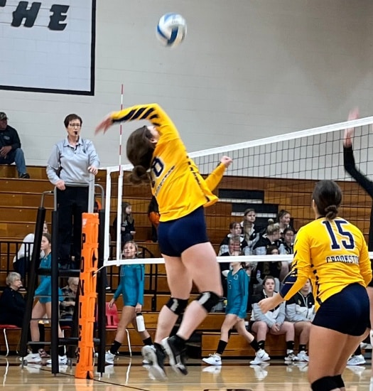 Ironically, in the second set, Clearbrook-Gonvick would beat the Pirates 25-17, meaning the two teams had each scored 42 points through the first two sets. “We would’ve actually only played two sets no matter what but our scores were the exact same so we ended up needing to play a quick third set tie-breaker,” said coach Engelstad.