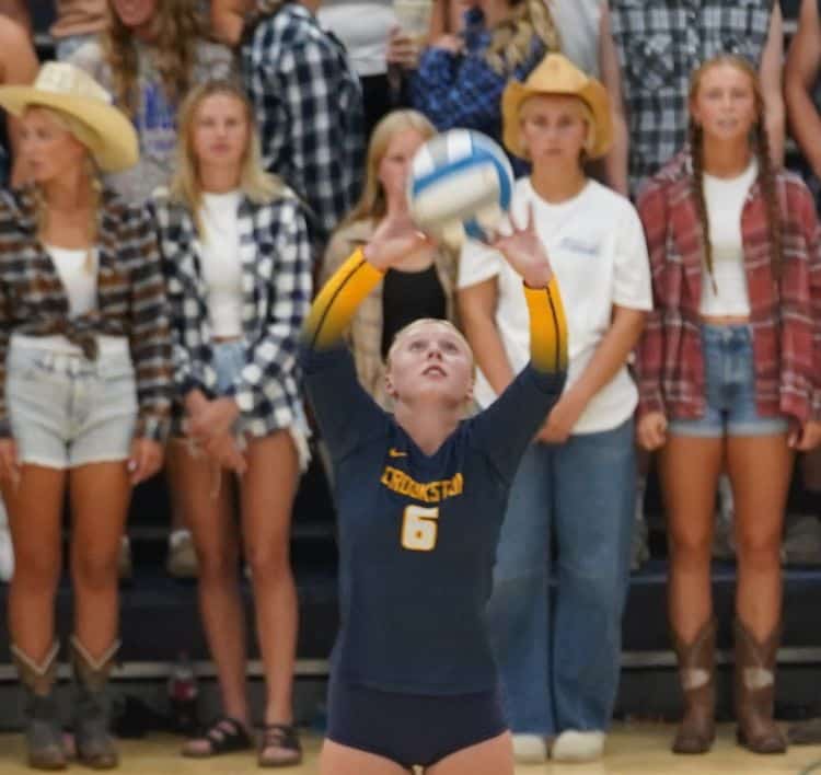 The third set was completely different than the first two sets. Crookston got off to a much better start, getting a Jayde Uttermark kill and a Lana Peterson ace to jump ahead to a 3-2 lead, and they maintained a slim advantage up until it was 8-7. Then, both teams alternated 17 consecutive points, going back and forth all the way until the score became 16-16. Crookston had three blocks in that span, including two from Morgan Boll, in her first extended burst of varsity playing time this year. The Falcons, however, cut the back-and-forth with a late run, as they went on a 7-0 run, sparked by another Erickson kill. That would be the final dagger, as the Falcons held on to take the final set 25-19, winning the match in three sets.