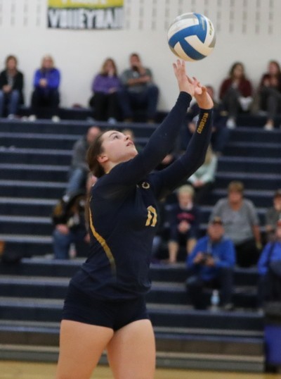 NCE/UH jumped out to a 4-1 lead, but Crookston slowly chipped away at the deficit and tied the set at 8-8. Crookston served into the net and Makenna Anderson and Ryah Opsahl had back-to-back kills to spark a 10-3 run for an 18-11 lead. The teams played even the rest of the way, but Crookston had too many errors and the Titans won the set 25-16 for a 2-0 lead. “We missed a lot of serves again,” said Coach Stopa. “Our rotation would go fast and their setter did a nice job of moving the ball around too.”