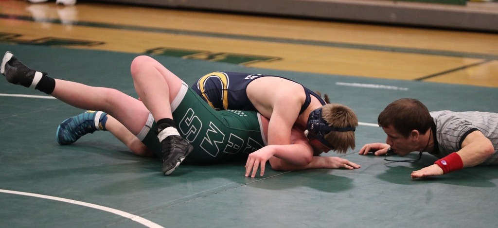 The match started at 113 pounds because of a new dual “rule” passed by the Minnesota State High School League that allows teams to take out up to two of the 14 matches in the dual as long as both teams agree to the matches. The coaches elected to take out the 106 pound and Heavyweight (285 pounds) matches. “It was a little different format with the 12 weight classes and that was a different look for us,” said Pirate Coach Wes Hanson. “It probably took away from a couple scoring opportunities for us, but there were some good matches wrestled tonight.”