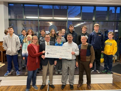 The Crookston Rotary Club recently presented a donation to The Cove youth center after receiving a district grant for $5,000 that was matched by a major local donor. The Cove will be using the money to create a recording studio that will allow youth the ability to enhance their creativity by recording and producing music tracks, videos that can be shared on YouTube, and more.