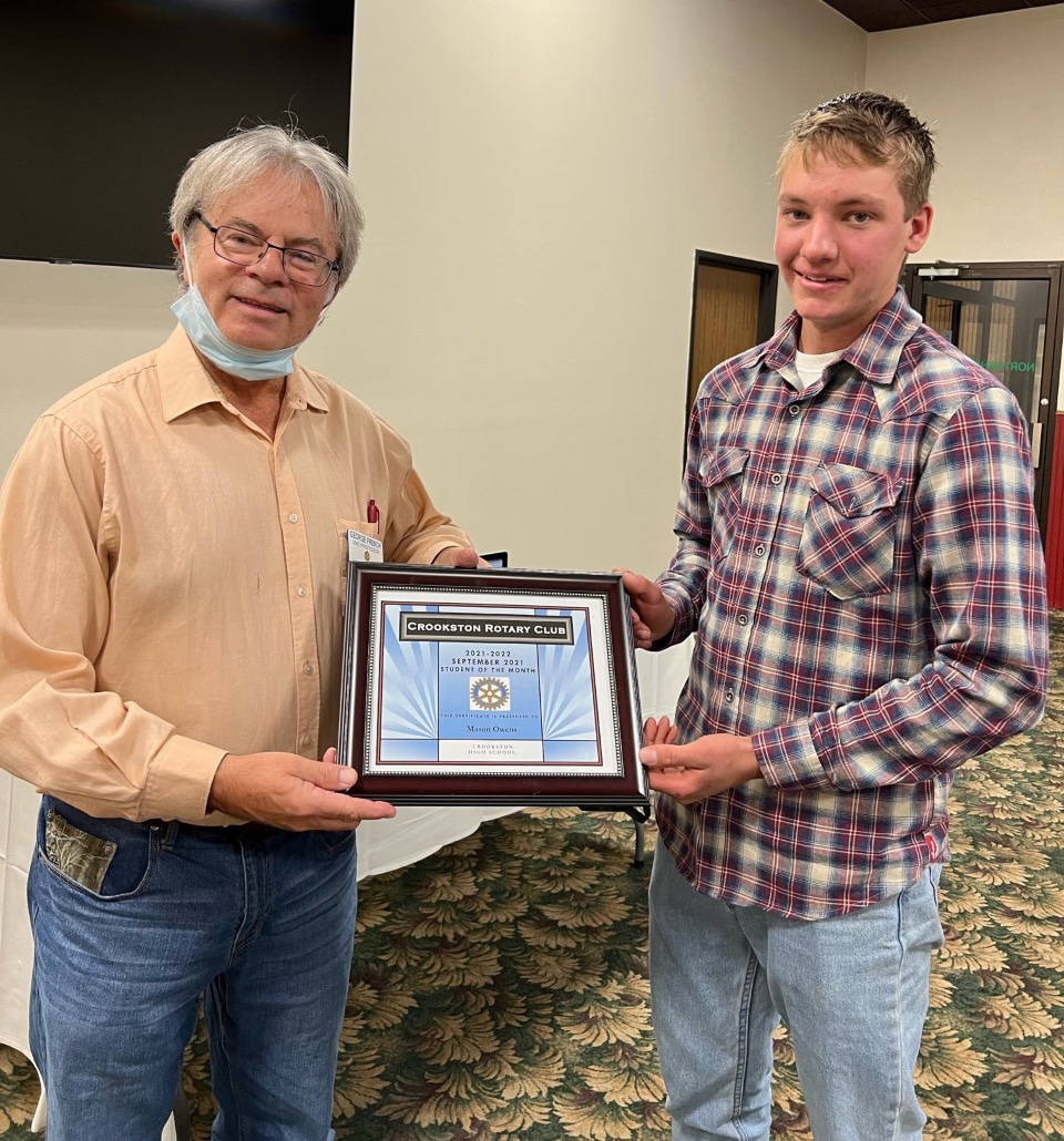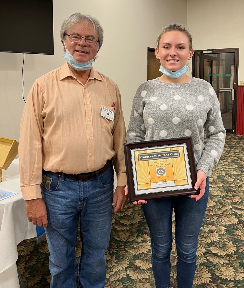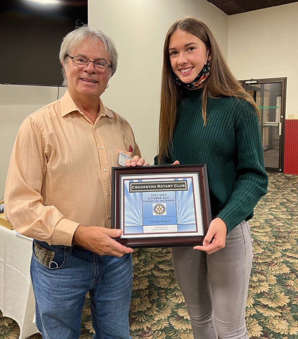 The Crookston Rotary Club recently honored their September and October Students of the Month both from Crookston High School and the University of Minnesota Crookston. Marina Wiley was the October UMC Student of the Month, Mason Owens was the September CHS Student of the Month, and Hayden Winjum was the October CHS Student of the Month.