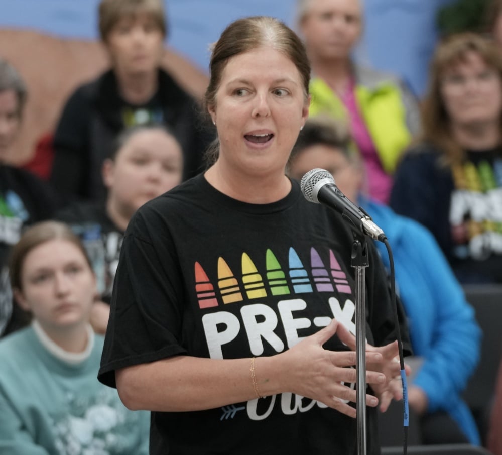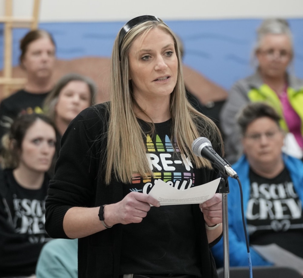 Kiely Tate, who is currently losing her job with the cut, spoke to the board about her frustration. Later in the meeting, Superintendent Randy Bruer said Tate will be able to apply for an opening when it becomes available in K through third grade as there has been a few spots that will open up.