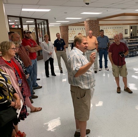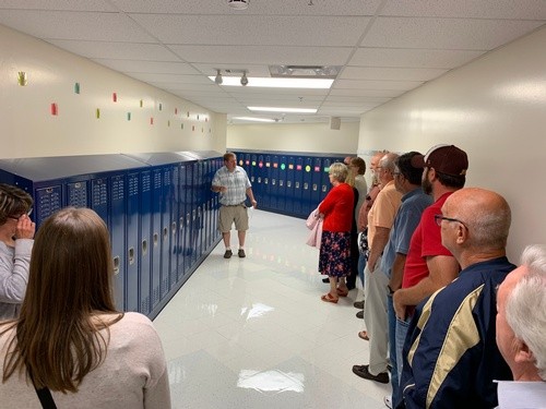 Highland School Principal Chris Trostad gave the tour of the remodeled areas. Trostad, Travis Oliver and the custodial staff were busy this summer getting the building ready for the new school year with first grade through sixth-grade students. “With first grade moving here we wanted to create a school within a school. We put the fifth and sixth grade on the east end and our first through fourth graders on the other end. By reconfiguring the building, we were able to do some things like locating the services like ELL, Title, Special Ed close to our neediest kids,” said Trostad. “Kenny Winger and his crew did a phenomenal job with all the moves and construction pieces, and Travis Oliver was a huge help too. We are pleased with the result, and the rooms are ready to go, and it looks like a new building.” The school has new lockers outside the classrooms, two new locker rooms by the gymnasium where one of the locker bays used to be located. They added a fifth and sixth-grade special education classroom where the old locker bay (north of the gym) used to be. An epoxy finish was used in the hallways by the gymnasium with a Pirate head logo in front of the doors.