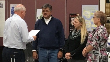 Frank Fee conducts the Oath of Office to Tim Dufault, Adrianne Winger, and Patti Dillabough