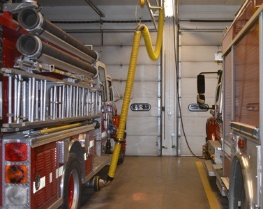 A bus garage, particularly one that would be district-owned would need some sort of air exchange system to make the garage as safe as possible despite the fumes. Chris Cournia, a member of the Crookston Fire Department, suggested Olson and Niemala visit the Crookston Fire Department to learn about the Plymovent ® system used in the Fire Hall (pictured to the right). KROX spoke with firefighter Bob Magsam and learned the system has been in place for about nine years and he recently spoke with the Edina Fire Department who just installed a new system at about $8,000 per truck.