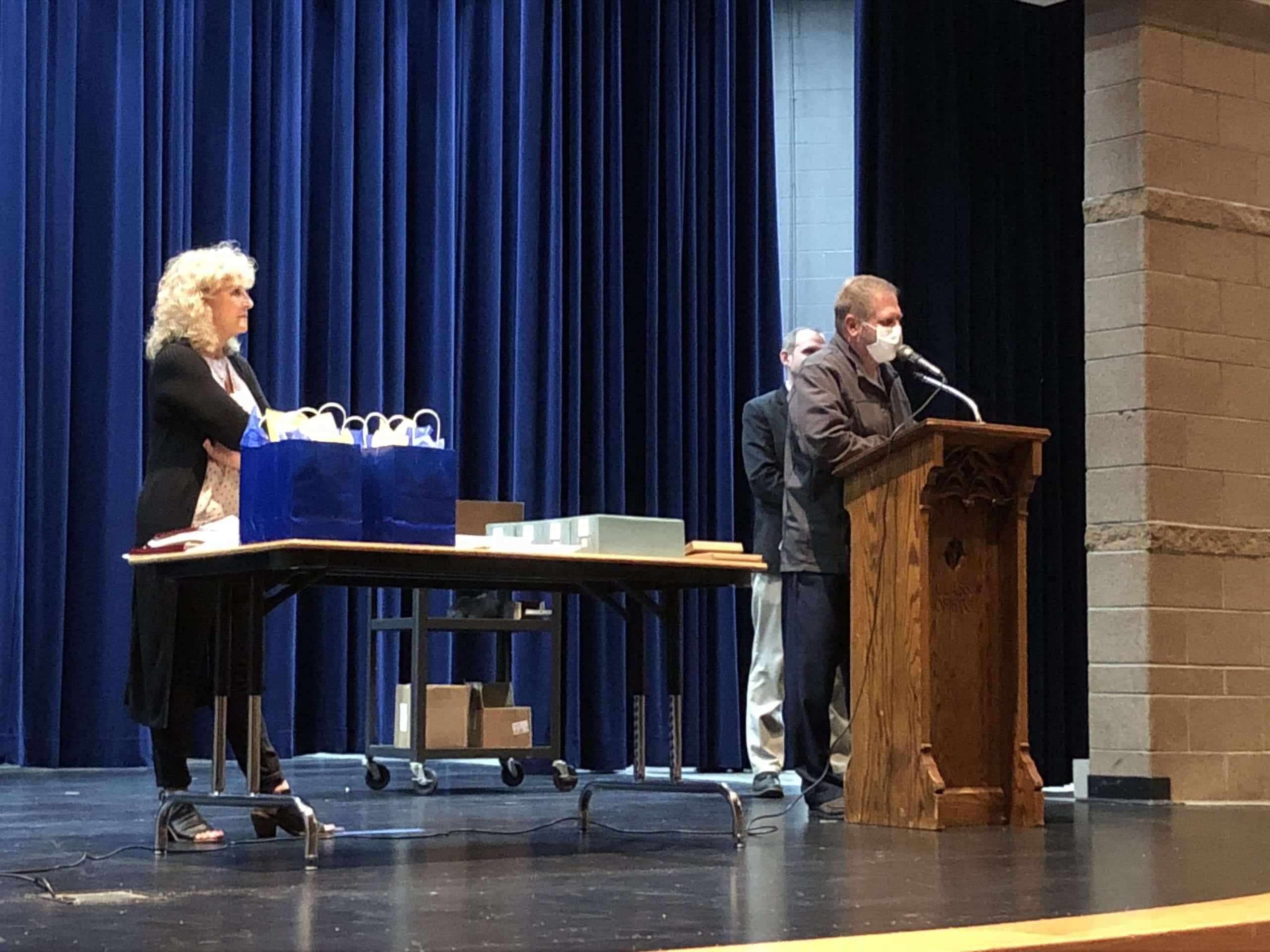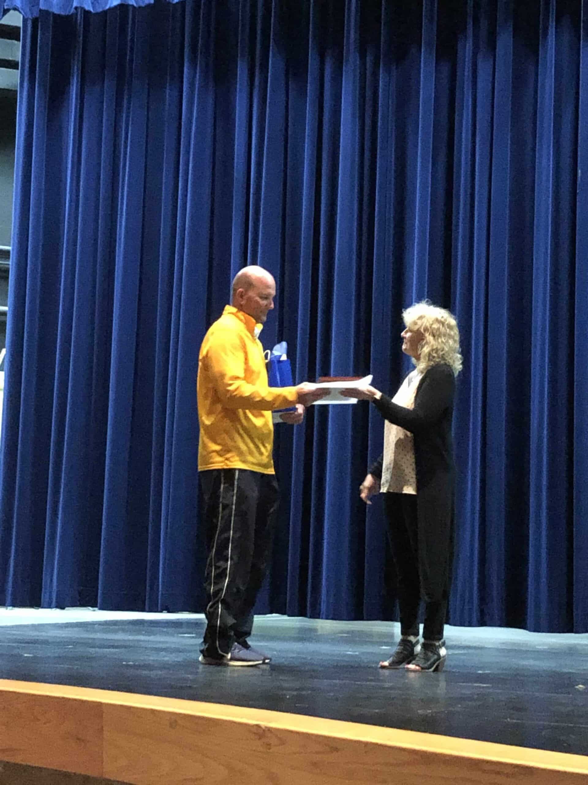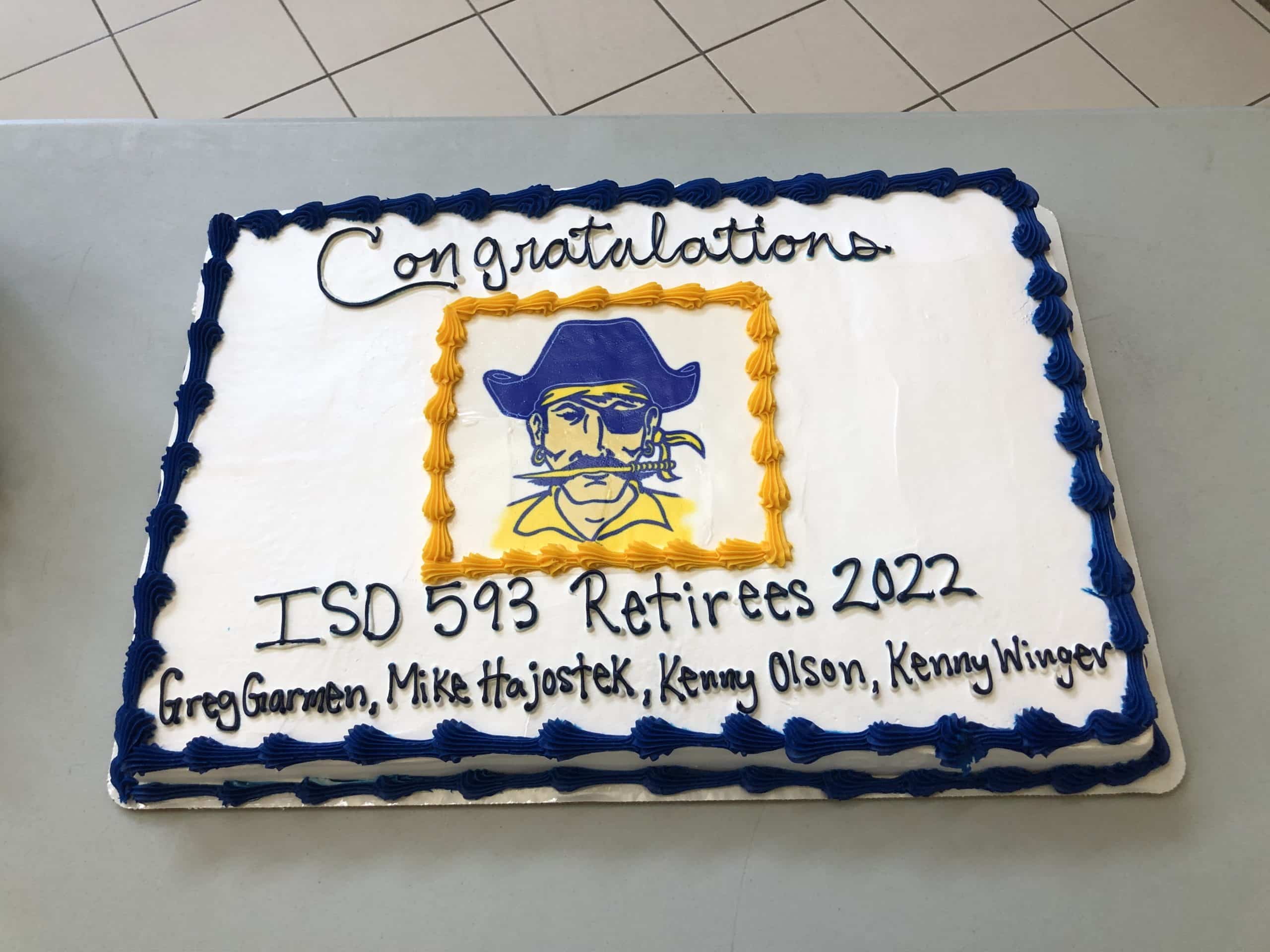 Superintendent Olson then began giving out service awards to staff members that had worked for 20, 25, and 30 years within the District. Olson then closed out the Ceremony by recognizing Greg Garmen, Mike Hajostek, Kenny Olson, and Kenny Winger as they were retiring this year and gave them gift bags and a plaque recognizing their contributions to the School District.