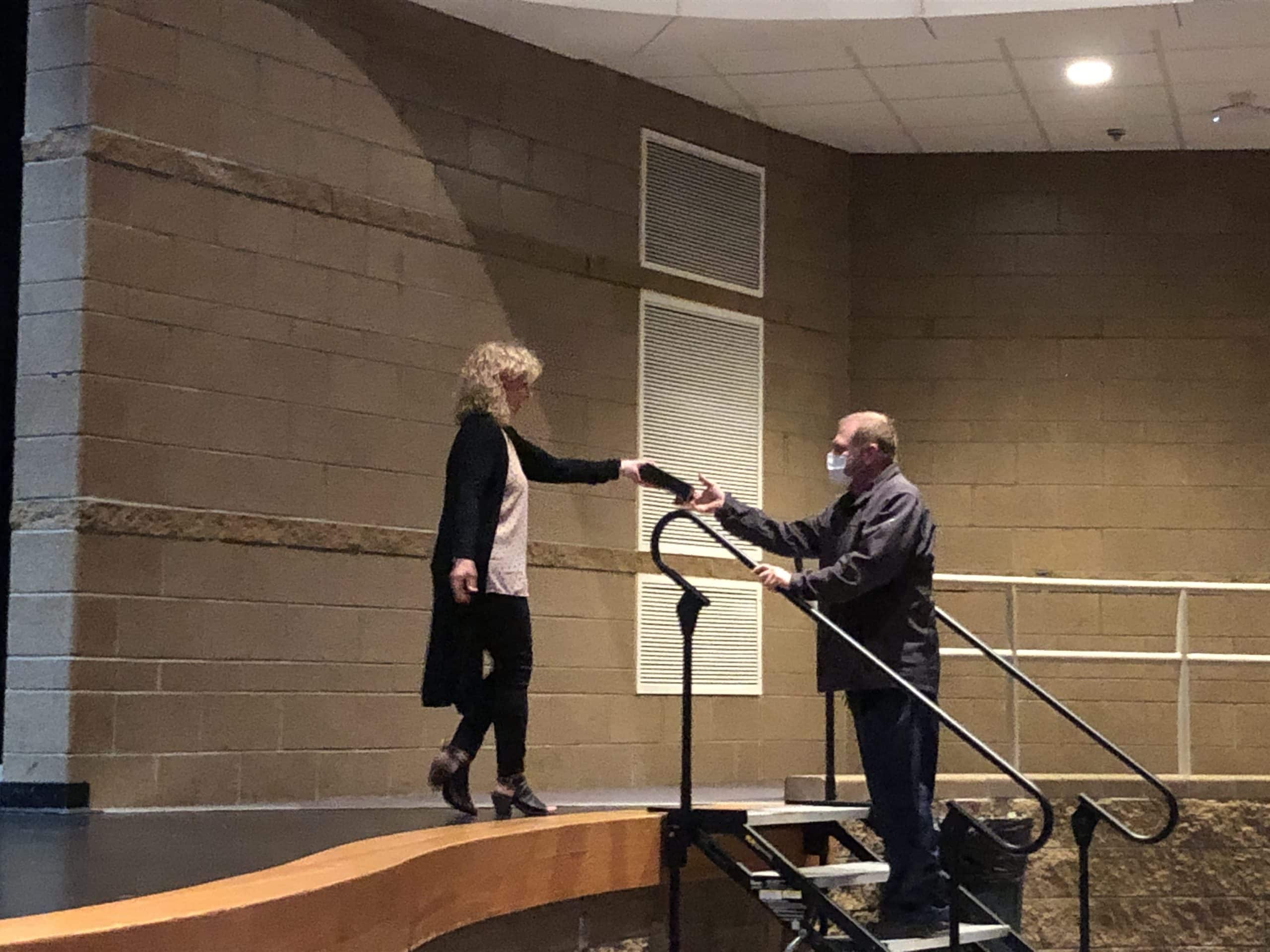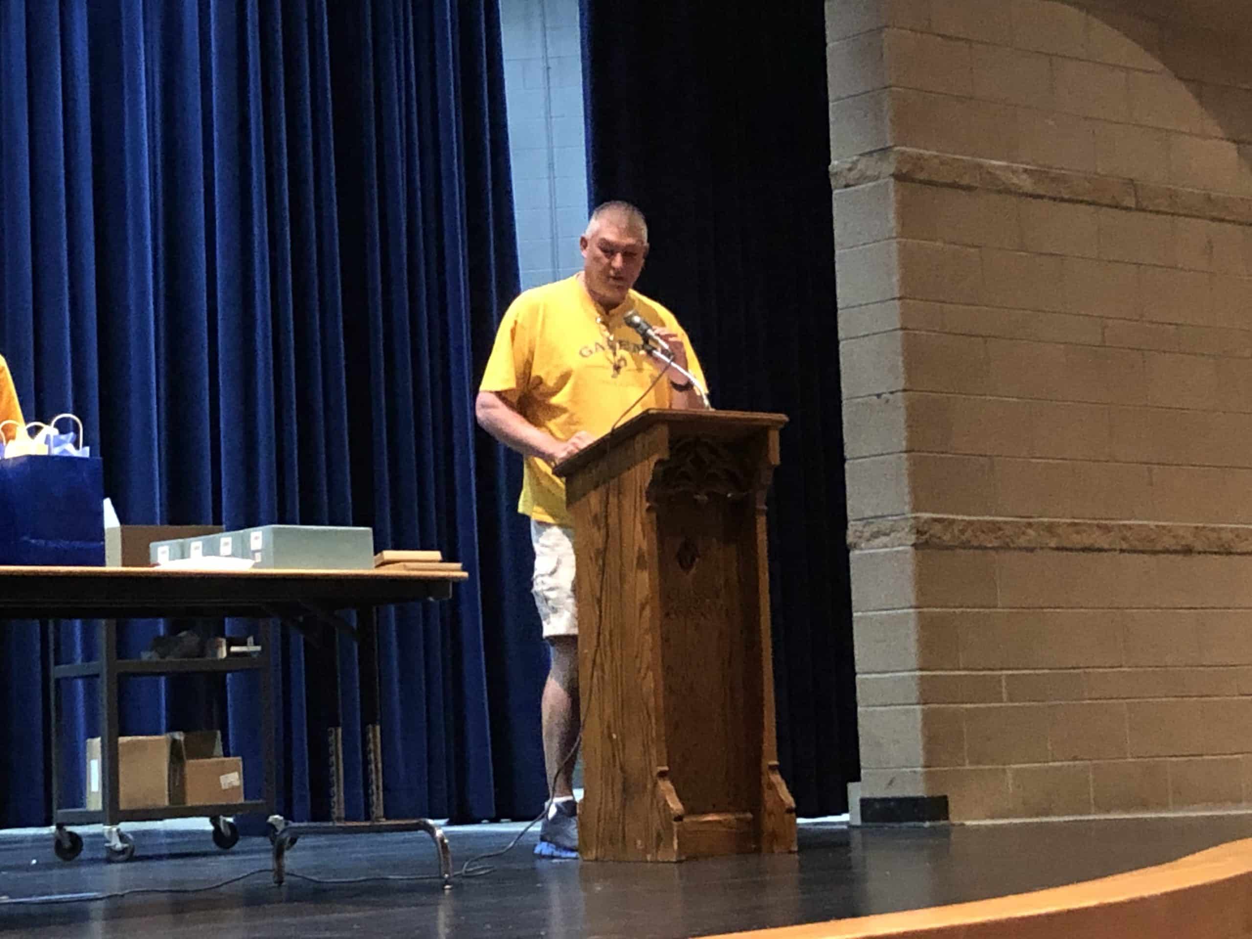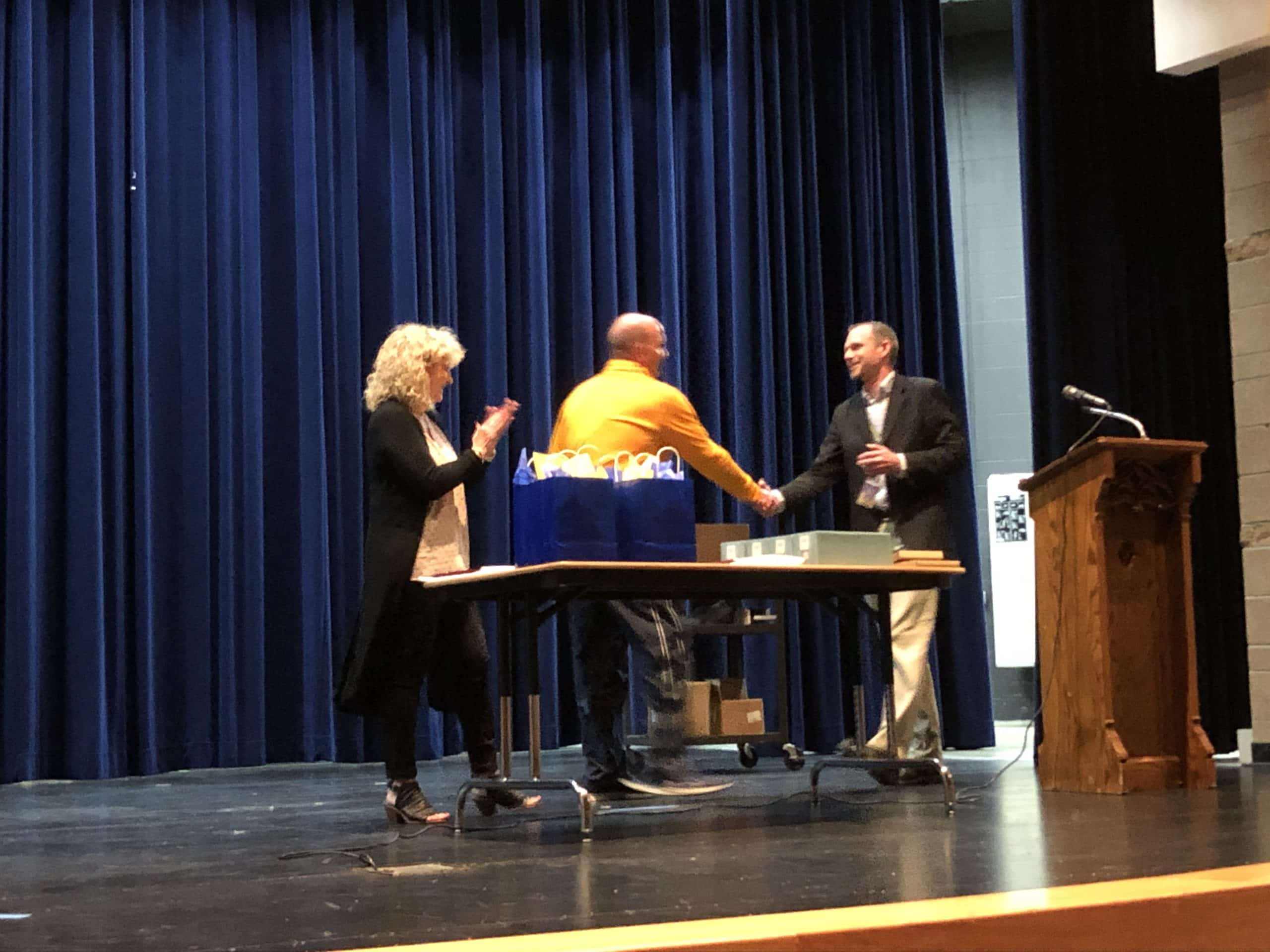 Superintendent Olson then began giving out service awards to staff members that had worked for 20, 25, and 30 years within the District. Olson then closed out the Ceremony by recognizing Greg Garmen, Mike Hajostek, Kenny Olson, and Kenny Winger as they were retiring this year and gave them gift bags and a plaque recognizing their contributions to the School District.
