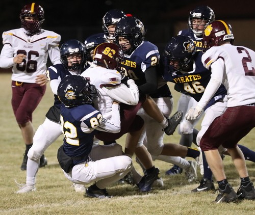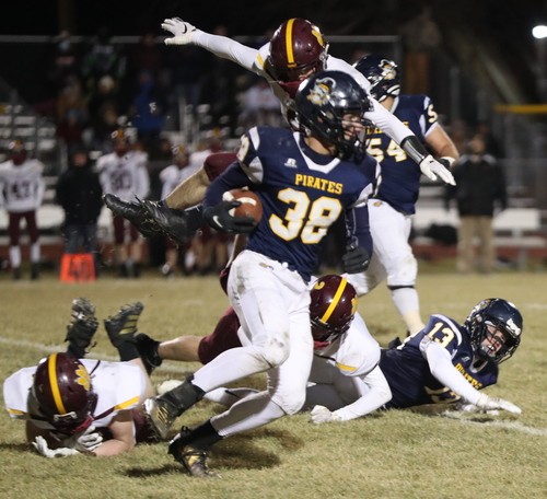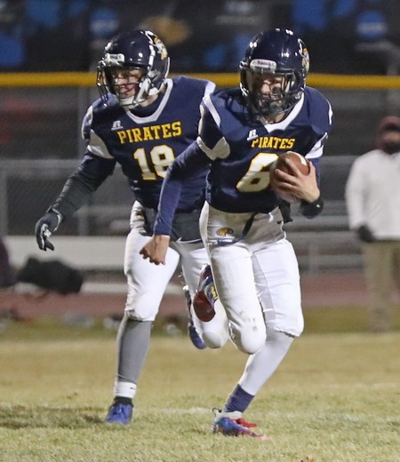Crookston started the game with the ball and had a three-and-out, and was forced to punt. After an eight-yard punt, Pillager had the ball in good field position but fumbled on their third play of the game, and Crookston’s Jaren Bailey recovered the ball, and the Pirates had the ball back. “They were running their toss play and I thought Jaren picking up the ball was great,” said Coach Butt. “I thought the kids did a great job and stepped up on that play.” Crookston had another three-and-out and had a 12-yard punt into a stiff wind from the south. Pillager started with the ball at the Crookston 26 yard line, and on the fifth play, they fumbled again. This time it was recovered by Zach Brown. “We ripped the ball out,” said Coach Butt. “Zach jumped on it and we were making things happen defensively and that was great to see.”