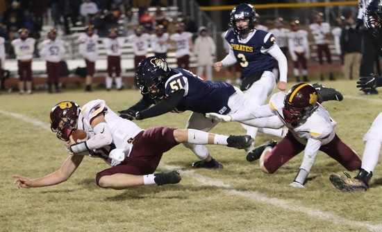 Crookston started with the ball at their own 26-yard line and had a fourth down and one at their own 30-yard line and decided to go for it. Crookston didn’t get the first down and turned the ball over on downs. Pillager fumbled the ball on the first play, and Crookston’s Zach Brown scooped up the ball and ran 58 yards and was stopped at the Pillager seven-yard line. “I thought Zach was going to score and I think if he would have cut the other way he might have,” said Coach Butt. “Zach played his heart out tonight and he was everywhere for us.” Crookston ran the ball for two-yard before back-to-back no gains for a fourth down and five situation. Crookston ran the ball for two yards and turned it over on downs at the three-yard line. Pillager had the ball when the first quarter ended with a scoreless tie. “We were playing pretty good defense,” said Coach Butt. “I was pleased with what we did the first quarter.”