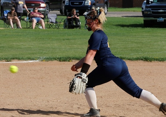 For the Pirates, Jenna Coauette was solid on the mound once again as she tallied 8 strikeouts. “Jenna and Danielle (Kresl) both did some pitching stuff yesterday, and Jenna was really working the change-up,” said Coach Bowman. “She was really on yesterday, and today she used it, and it worked!” She got out of some tough situations as well, including a runner at third with one out and two runners on with one out. She was helped by some strong defense from Reese Swanson at the third base. “She is very much a perfectionist, so I like having her over there,” explained Coach Bowman. “She’s fast, she reacts very quickly, and she has a great arm to get it over to first.”