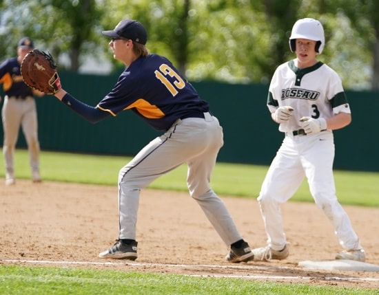 Crookston was retired in 1-2-3 fashion. Roseau’s Eli Wensloff recorded the first hit of the game. Wensloff was picked off with a nice move by the Pirate pitcher Gavyn Hlucny. The Rams’ Jack Jerome walked before the next batter was retired.